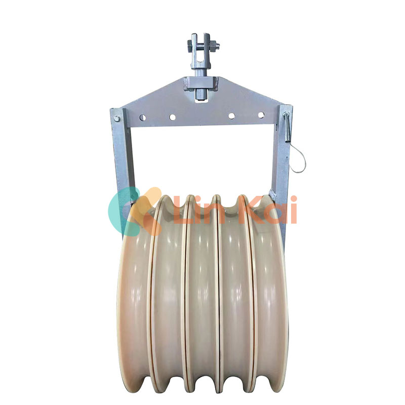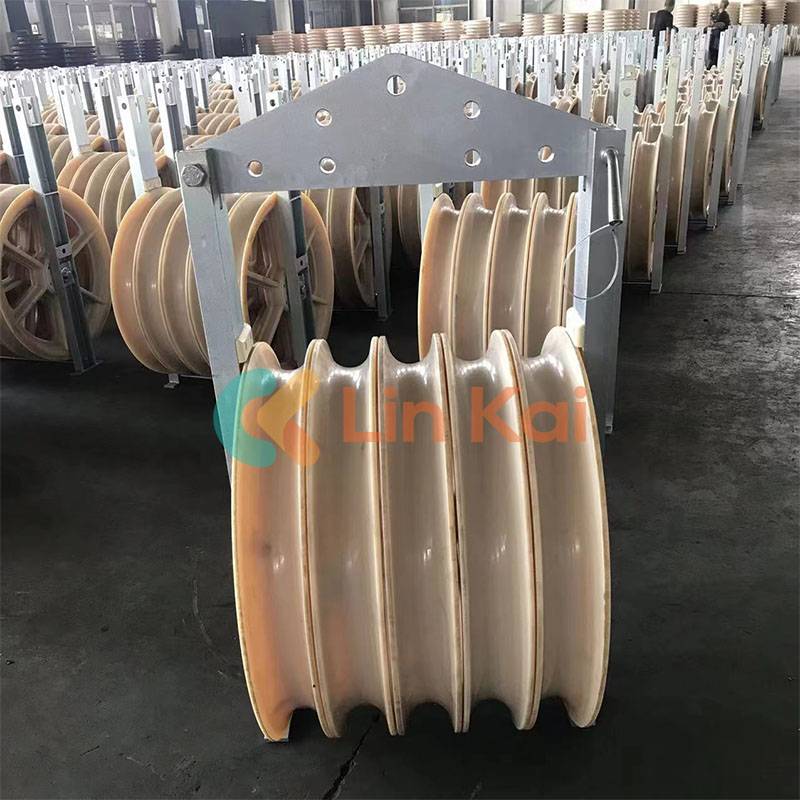 Vzdržljivi bloki za vrvice prevodnikov: ti bloki za vrvice z velikim premerom 822 mm so opremljeni z izbiro vmesnih koles iz litega jekla ali MC najlona, glede na potrebe stranke; Za prevodnik lahko izberete MC najlonsko kolo, gumijasto stiskalno aluminijasto kolo ali gumijasto stiskalno MC najlonsko kolo.